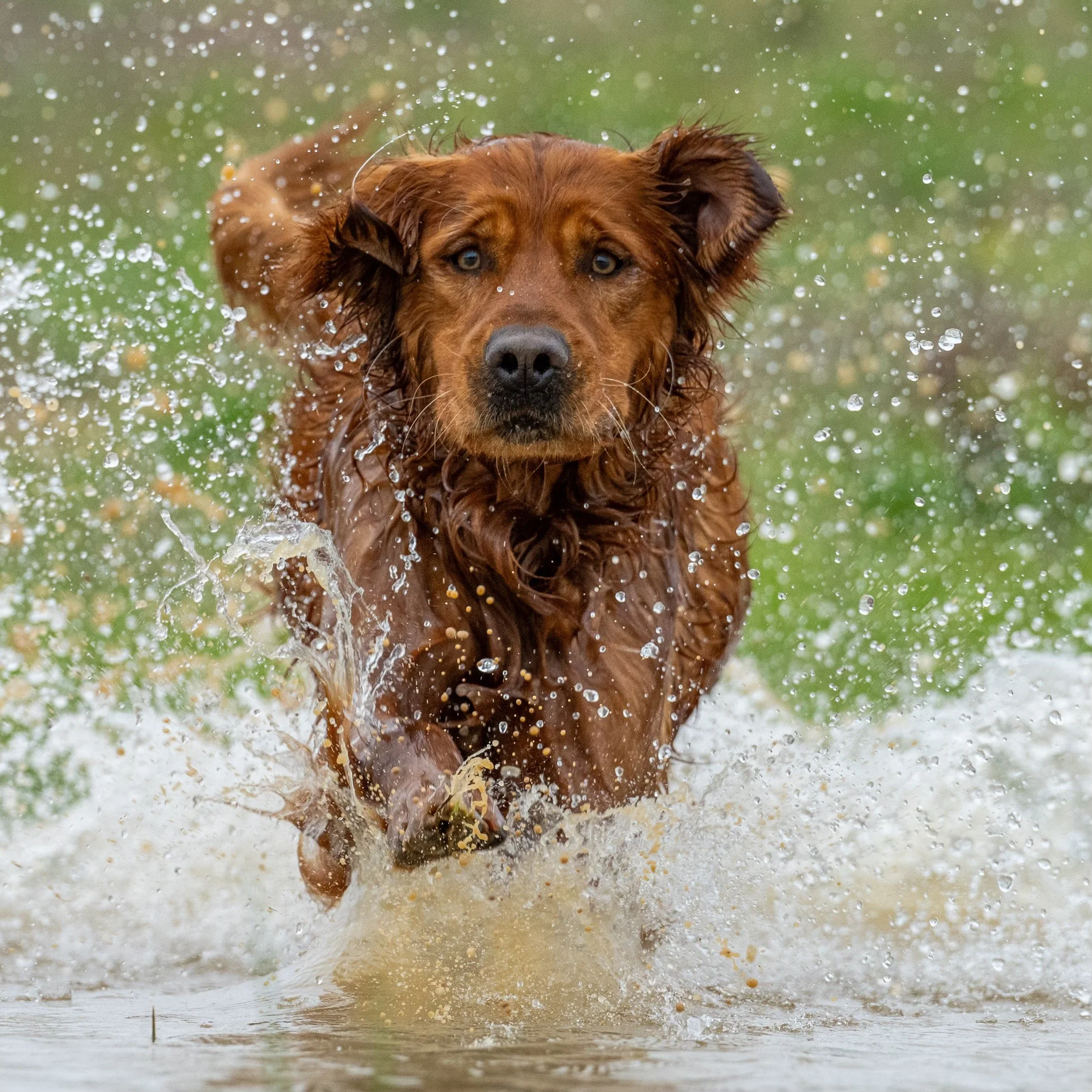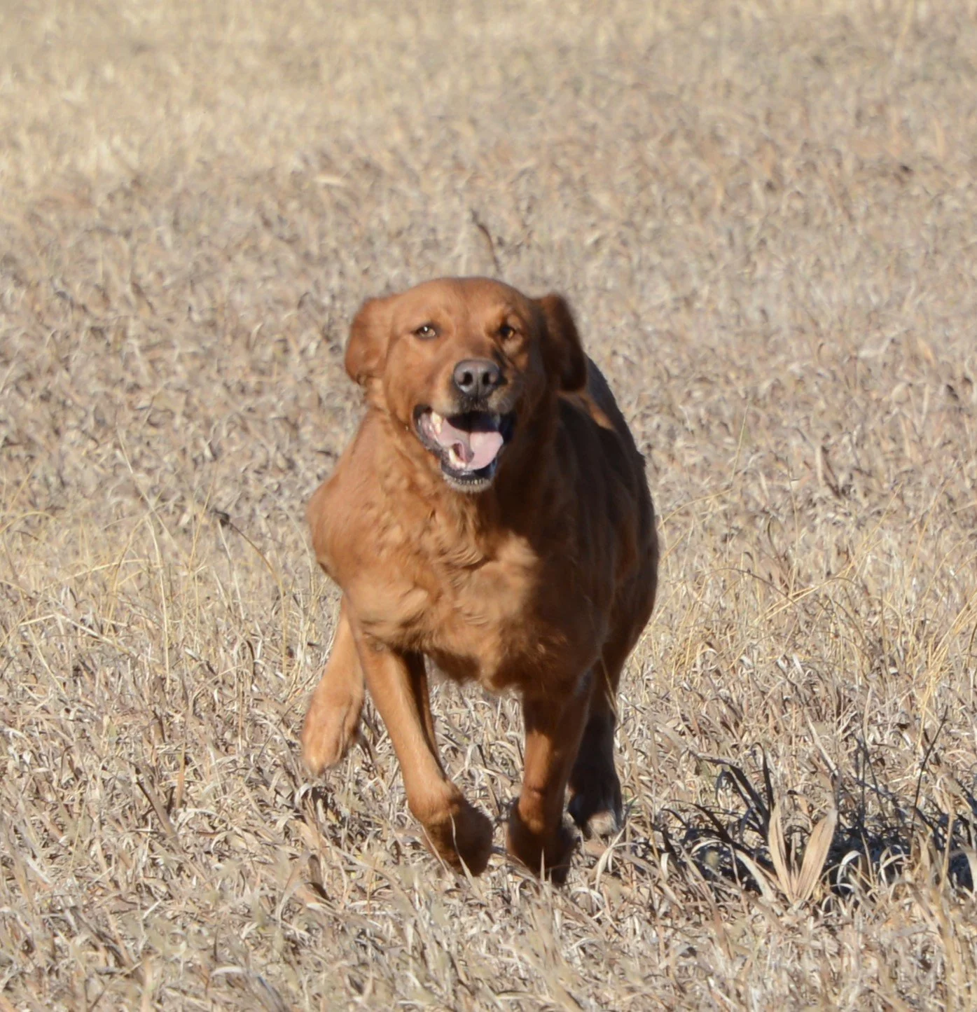 Rory is a beautiful dark red golden with an incredible demeanor, both drive and an off switch rolled into one. When I first met Rory, he was on a hunting trip near Crescent Lake refuge which is located on the high plains of Nebraska. The first thing that jumped out at me was how handsome he was. His steadiness, marking, & blinds was very impressive to watch.